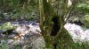弱い水音の松尾谷に下った岩場対岸の高処が「松尾谷の滝」滝頭伏流が染み出す地点だ。