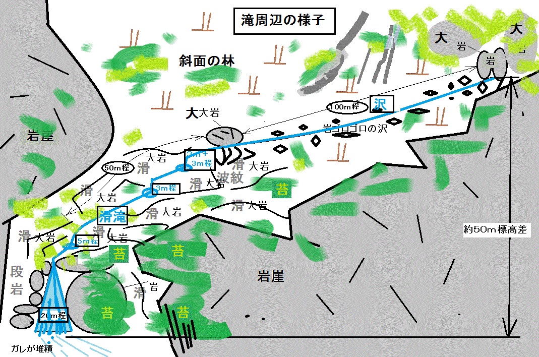 民ケ谷の滝(仮称)周辺の記憶による様子です。