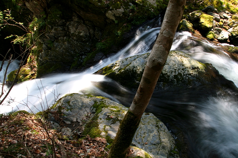 こちらは掛橋谷川を渡って「明神滝」左岸から見た滝頭。