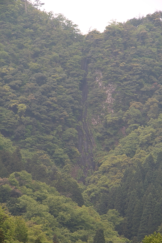 布引の滝 2012/05/17 京都府伊根町本庄上 筒川支流 落差:100m 滝の向き=東 R178「布引の滝」展望台に向かう途中で”舟屋の里”で遊覧しようということになった。 先を急ぐ旅ではないのでのんびり遊覧船に乗り”舟屋の里”遊覧。 そしてR178を更に北進9km程の道路脇から眺めた「布引の滝」はご覧のただの壁。 一応これで"京都の自然200選"の9箇所の滝は全部見たことになるものの完全にヒエあがった滝はこの滝だけだった。 不完全訪問なのは「虚空蔵谷の滝」(一の滝:約5m、二の滝:約3m)の内”二の滝”である。 多くの人が”二の滝”として写真を揚げているのは別沢の無名滝であることが多い。 何時か機会があれば訪ねたいが滝に行くルートが解らないのが悩みだ。 ”二の滝”は”一の滝”上なのは確かなので強引に”一の滝”脇を登るのが正解かも? |