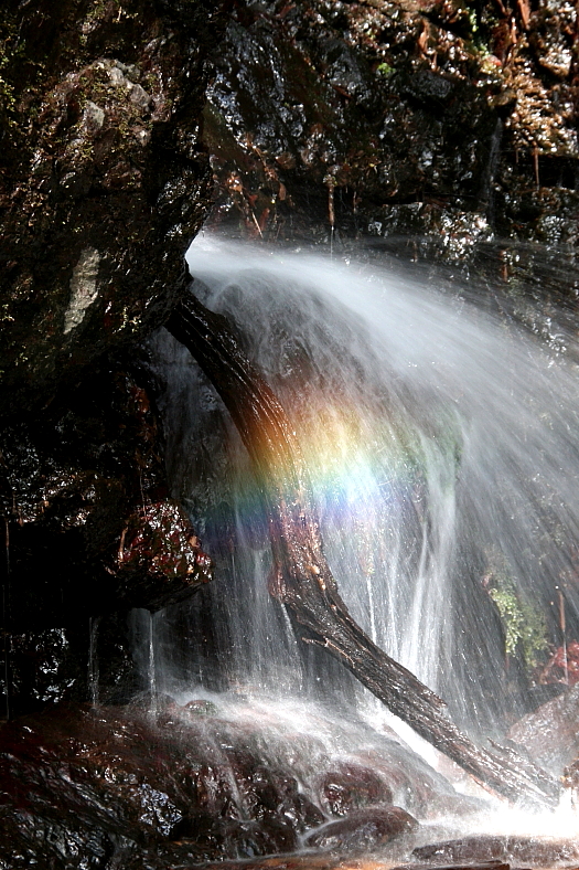 思った通り序徐に派手に飛沫を飛ばしている滝壺側に虹が降りてきた。