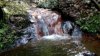 磯砂山(いさなごさん 661m)は花崗岩の山で含まれる鉄分(磁鉄鉱:方角磁石誤動作注意)のせいか赤い滝床が印象的。