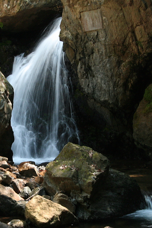 経岩から3〜4分上流に向け歩くと「聴呪の滝」の傍に着く。