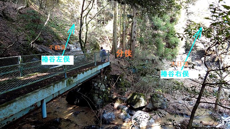 林道口からこの椿谷左俣、椿谷右俣分伎まで歩17分。
