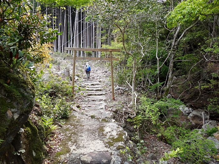 やっと、見つけた参道を辿るのだが・・昨日の今日の”大杉谷帰還の3G”。
