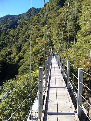 千尋滝までの前半は大日くら吊橋>熊谷吊橋>地獄谷吊橋>日浦杉吊橋(写真)を渡る。
