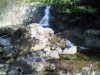 大きな岩の傍から急傾斜の踏み跡を3分位で滝下流に降りる。