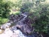 滝壺前の砂溜まりに渡るには長靴で容易に渡れるが登山靴では濡れる覚悟がいる。