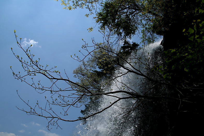 乙女の滝 2008/05/18 長野県茅野市豊平 上川上流 渋川 落差:m 滝の向き=南 横谷渓谷入口は「醤油樽の滝」のある渓谷入り口のフォレストカントリークラブ三井の森(三井不動産の開発のゴルフ場)から3Km程北だが道路が西に倍以上大きく迂回しているため大集団の車列が写録の旅人さんの”軽箱=独伴駈巣”先頭に大名行列をなして集団移動する。 横谷渓谷入り口に駐車し渓谷遊歩道を歩きだし最初の「乙女の滝」の大爆発流に圧倒される。 若葉が綺麗に芽吹いてウキウキ(^^♪する。