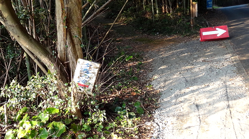 [自然歩道標]から直ぐの「夕霧の滝」標示方向に左折し農道(軽自動車限定と思った方がよい)に入る。