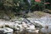 案内板から供養塔の川側に歩いてすぐのところの河原の対岸に落差のある段瀑が見える。