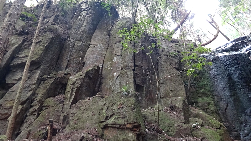 右岸の岩壁は迫力十分だ。