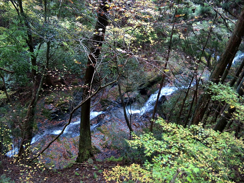 途中の分技を上谷方向に左折し国道から3km程上流に入ると渓流瀑が見えてくる。