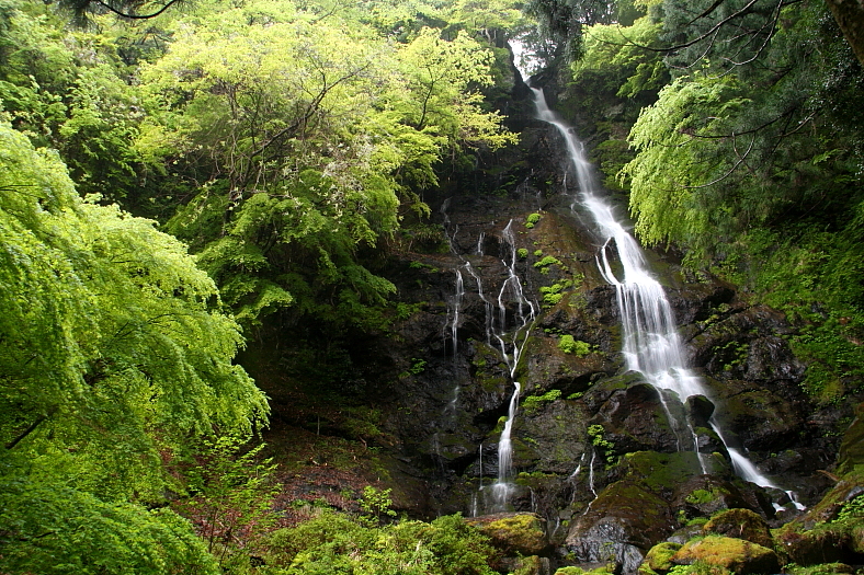 和佐羅の滝 2009/05/05 奈良県吉野郡東吉野村大字大又 大又川支流 又迫谷 落差:40m 滝の向き=南西 写録の旅人さんは誰かを案内する時は自分が訪ねた経験に必ず+αを加える。 今回の「和佐羅の滝」も例外でなかった。 写録の旅人さんレポを転載させていただくと・・・・ 「和佐羅の滝」の入口である「又迫谷」の出合い部に一台の車を停め(ておき)、(他の1台に)相乗りして上の集落の突当たりへ・・・ 上からのルートがある事は承知していたが利用するのは初めてだった。 途中に標識もあり15分弱で最後に急坂を下ると、写録の旅人さんが三の滝と呼んだ一番下の滝の前に出た。 ・・・・ということだ。 このルート情報を直前の"東吉野村・ふるさと村"での昼食時にしっかりゲットしてきていたのだ。 つまり、通常30分はかかる(通常の急登遊歩道1km)を使わず15分弱の下り別ルートで到達し、帰路は(通常の急登遊歩道1km)を逆に下ったので体力は殆ど要しなかったのだ。 但しこの方法は2台の車で訪問時に有効なのであり単純に上からのルートの往復では有効でないことは写録の旅人さんのレポでも記述されている。 |