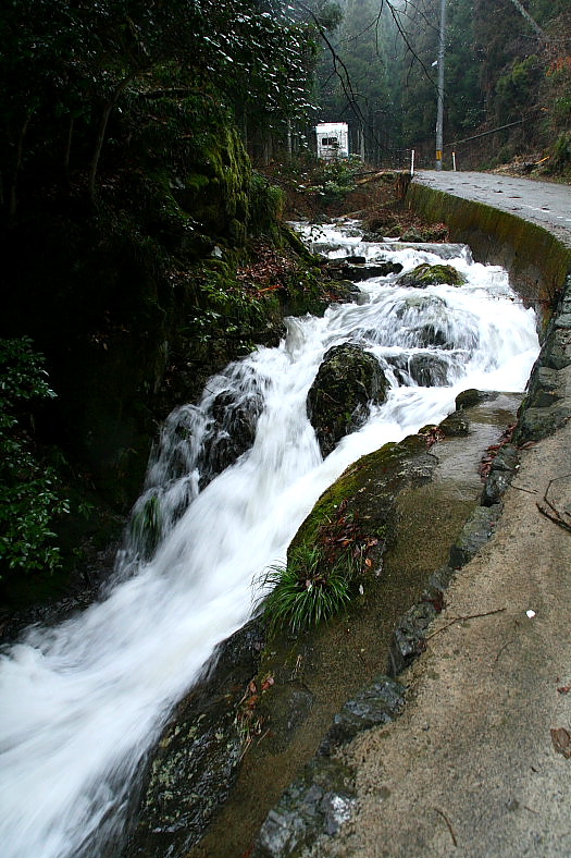 雨で"一の滝"上流の流れの増水がはじまっている。