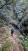 「人智開明の滝」右手を高巻く崩壊土砂崖は可也危険だが設置ロープで慎重に越える。