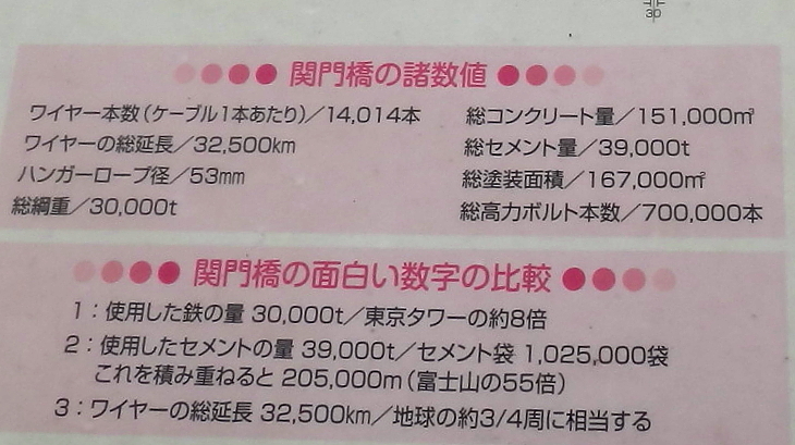 こちらは”関門橋”の”おもしろ数値”。