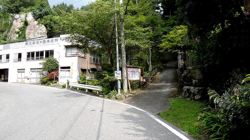 [日野沢三滝]の周遊滝看板の前から川沿いの緩い坂を登って行く。