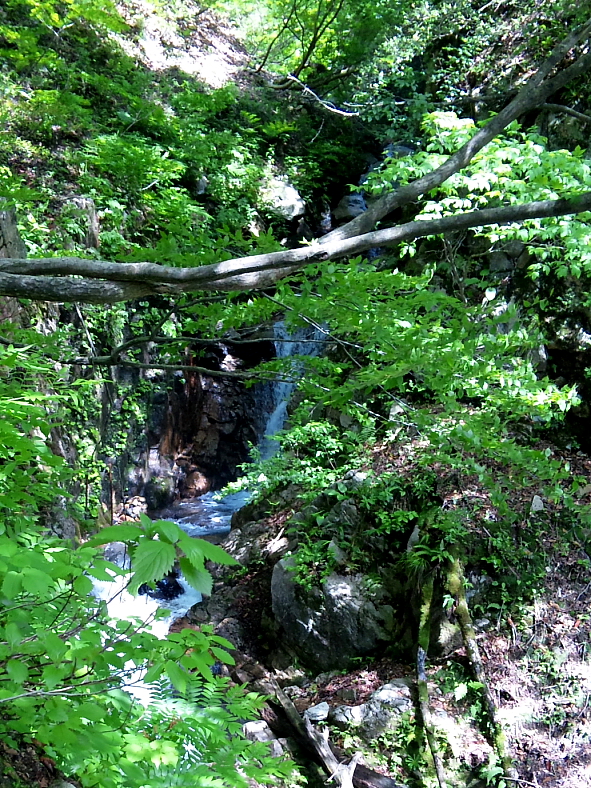 ゲレンデの草地の中を2kmも登った奥地に滝は落ちていた。