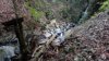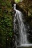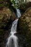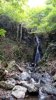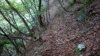 流水細谷を3か所越えて回り込んだ先に水音が聞こえ、その先はロープを張った滑りやすい斜面右手ヒジキ谷に「ヒジキ滝(標高600m)」が見えてくる。