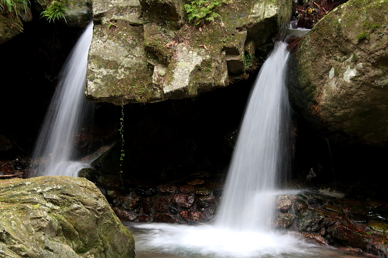 ・・ただよくある境内の滝のように水量が少なく岩を伝うだけのものではなく、清らかな水がドウドウと流れている・・。