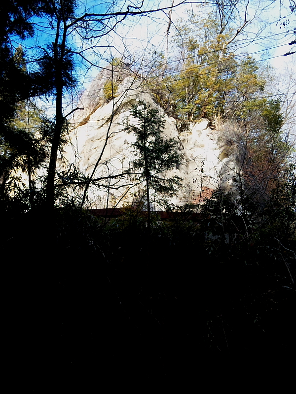 滝下から眺めたr334カーブの岩山。