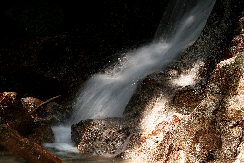 滝下は丁度正午の陽光が射し込んだピーカン状態。