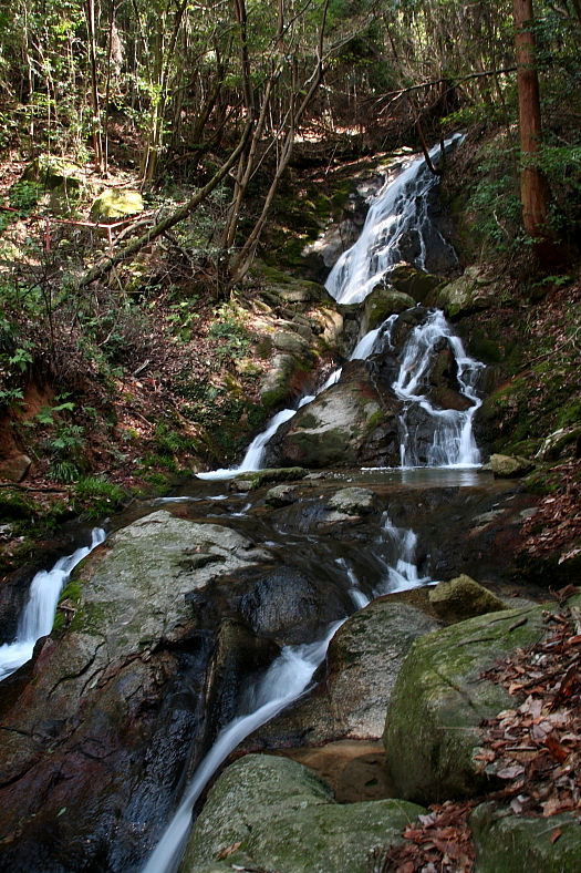 落差:上滝(奥滝):約8m、中滝(大滝):約8m渓流瀑、下滝(門滝):約3m、渓流延長約100m。