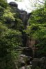 細い虎ロープの垂れた岩(松の根のステップ)の左に滝音がして上から覗き込むと段になった流身がみえるが全容はこの上覗きでは不完全だ。