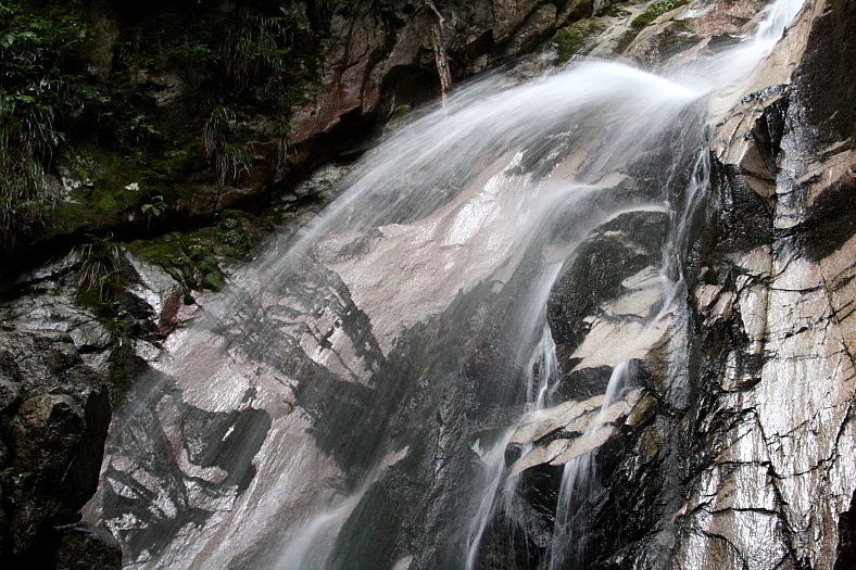 神爾(しんじ)の滝 2010/09/03 滋賀県大津市比良山神爾谷 落差:雄滝17m、雌滝12m 「神爾の滝」は通常は雄滝だけを指すことが多いが超マニアの”写録の旅人さん”に対してそれだけ案内したのでは”手抜き”案内のそしり受け恨まれることになる。 先ず”雄滝”をご案内して満足していただけたようなので、気をよくして下流の”分技滝(仮称)”と”雌滝”も・・。 都合よくザックにザイルが入っていたのはラッキーだった。 この二滝は御手軽滝ではなく、危険な急斜面を下るため案内標識も建てられてない。 ”写録の旅人さん”の疲労に輪をかけることになるのだが”手抜き”のそしり受け恨まれることになるよりは良しとすることにした。 |