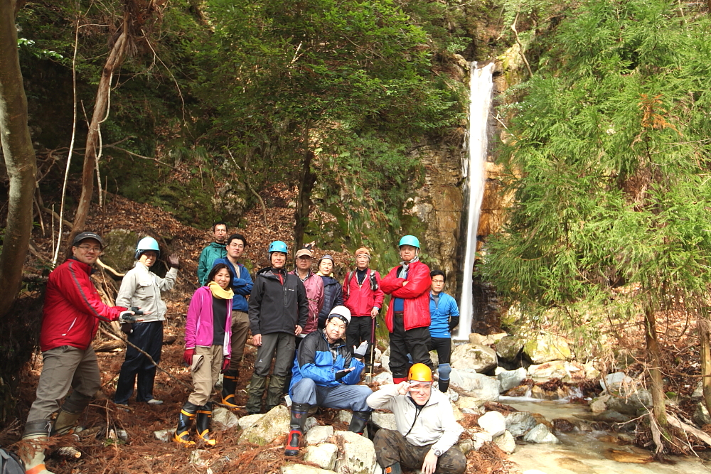 雌滝前の集合写真。