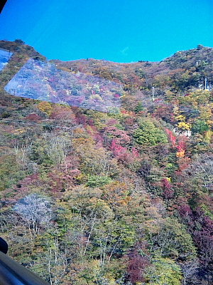 天気予報は全国的晴天を伝えていた。こんな日に家にくすぶっているのは勿体無い。 当日の夜半に急遽準備をして8時過ぎ志賀駅に降り立った。 バスは9時過ぎの時間のため1時間程駅前の駄菓子店のおかみと雑談しながら情報収集。 バスの運ちゃんが入ってきて 「小女郎峠あたりで遭難があったみたい」 という。 琵琶湖バレー山麓駅に着くと山岳救助隊員が準備体勢に入っていた。 始発9時半の大きなロープウェイリフトに乗ると救助隊員も乗ってきた。 リフトから見える山の紅葉は最盛近い。 単独ではじめての白滝谷徘徊なので注意しなくっちゃ〜 山頂から150m標高差の木戸峠までの30度以上はあるゲレンデを転げそうになりながら出発。 |