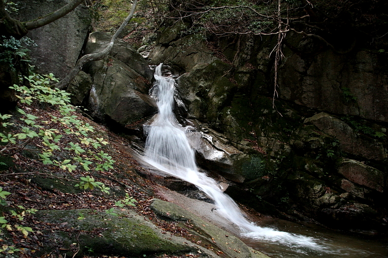 ところが沢まで降りる頼りないロープでまさしく滑り石をトラバースして木の根につかまって大きな滑りそうな石の岸に立った。