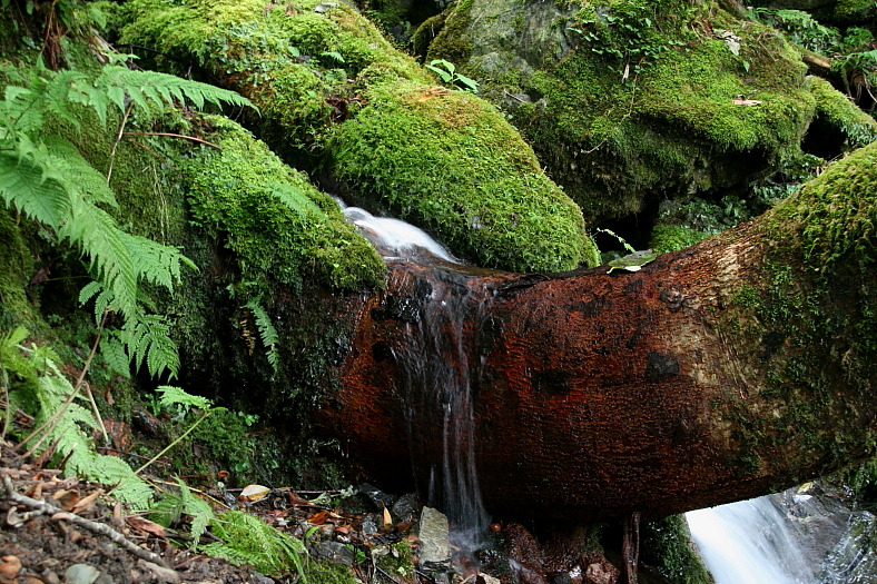 北向きの谷のため暗く陰気だが岩に貼りついた苔は青々としている。