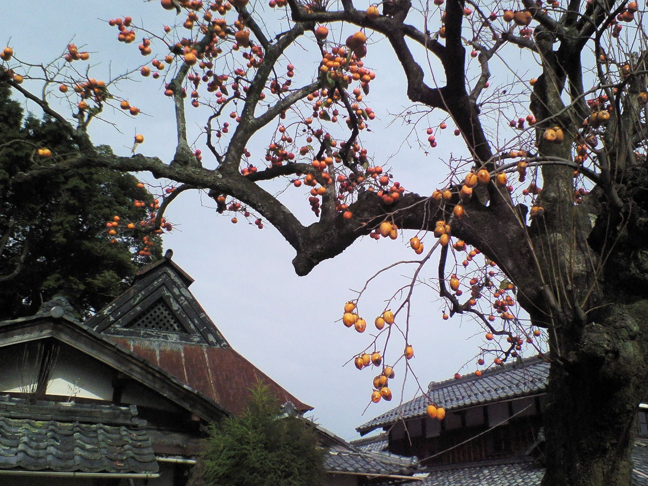 右は、同一木に異種柿・・わかるかな〜?