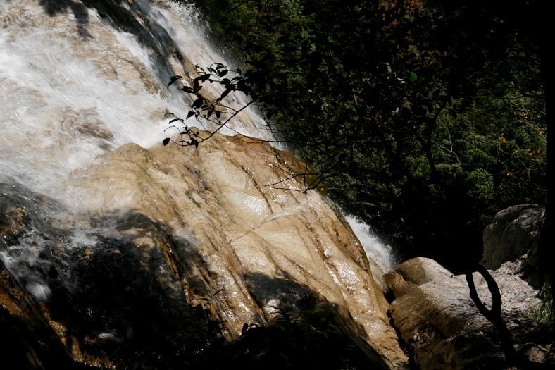 先ず右岸から恐る恐る滝下を覗いてみたが滝壺は見えない。