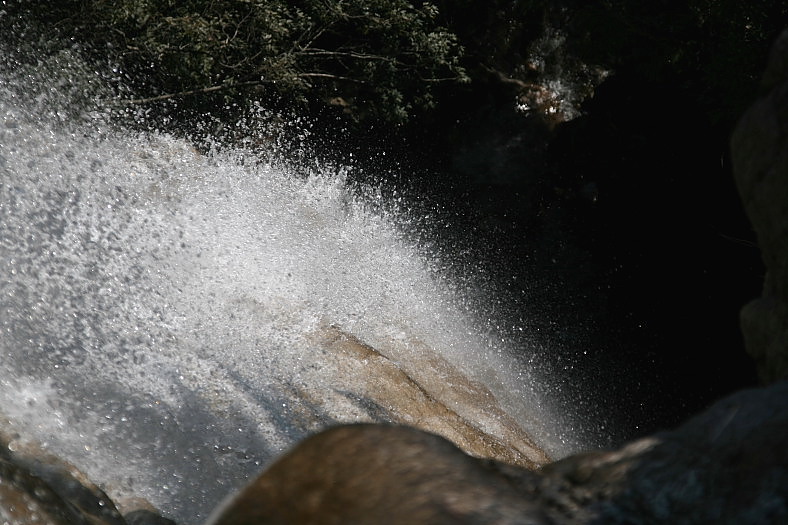 滝の下は暗くて見えにくい。
