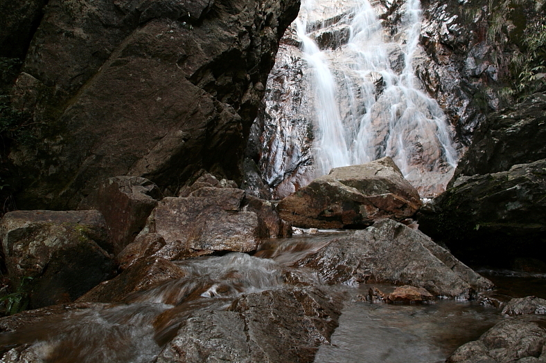 滝壺は更に暗いがその暗さが絵にならないかと眺め回して撮ってみる。