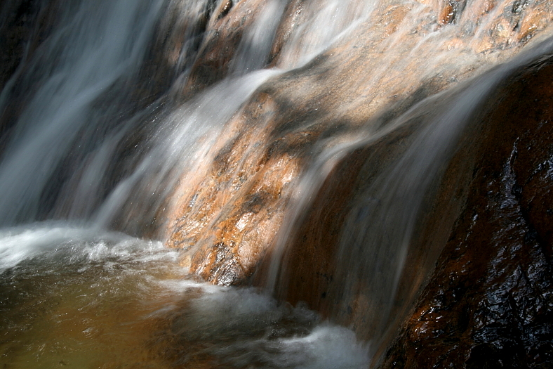 滝壺にもたっぷり陽光が射し込みゴールドの輝きを見せる。