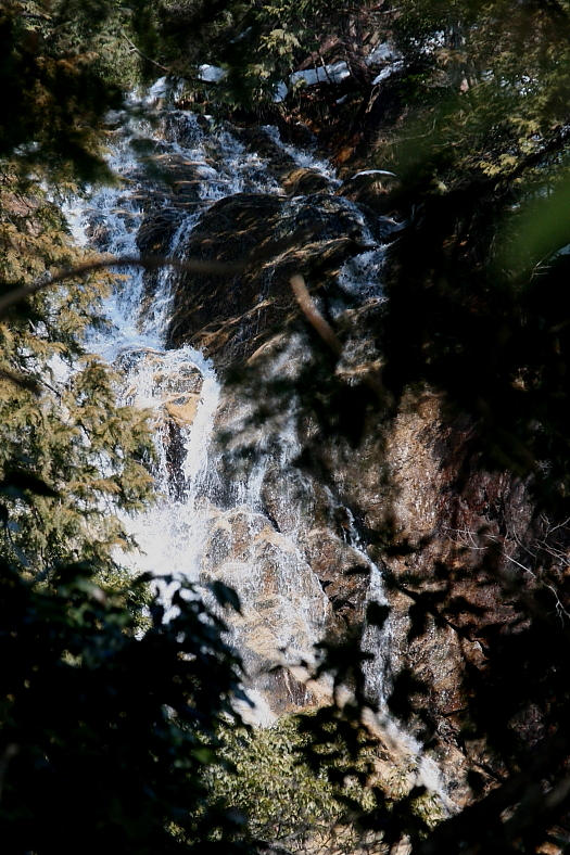楊梅の滝 2011/02/03 滋賀県大津市北小松 落差:雄滝40m、薬研の滝21m、雌滝15m。 大満足の晴天写真を撮り終え帰還体勢。 「沢登りコース」と「尾根道コース」の分伎から雄滝の滝頭が見えることは以前のレポでも書いた。 但し木の葉の無い冬季限定。 撮ったら朝登ってきた「沢登りコース」を注意して降りる。 陽射しで雪が緩んで思わぬ処に足が滑り込むのだ。 休憩小屋に帰り着いたら12時をわずか周っていた。 今回は、曇天と快晴の「雄滝」が撮れ、初めてのツララも見られて良かった。 次回は「薬研の滝」の虹撮りを再挑戦しよう。 おわり |