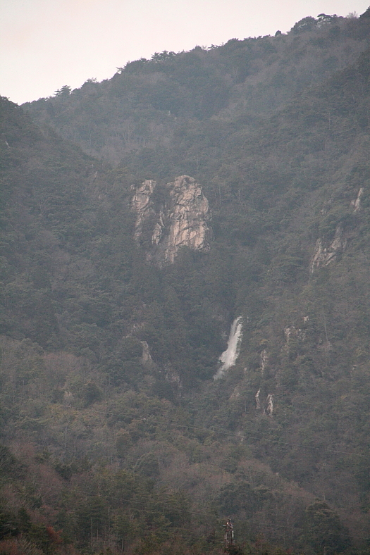 大津方面に向かうR161から”雄滝”が遠望できるポイントがJR湖西線の高架下にある。