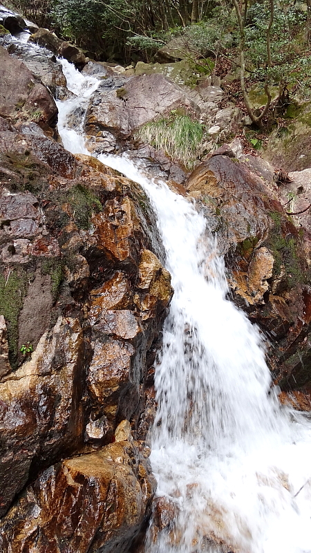 楊梅の滝・上流滝 2016/03/13 滋賀県大津市北小松 獅子ヶ谷 落差:三段滑滝8m、二条チョックストーン4m、末広二段滝7m。 雄滝から上流〜獅子ヶ谷ルートは一般登山道ではありません! 「神璽の滝」から「楊梅の滝」に移動してきた。 幾度も来た「楊梅の滝」の雄滝上流に更に滝が落ちると当日オトマッキーさんから聞いた。 獅子岩傍の・・・・・・・・・・・・・・・・・・・・・・・・・・・・・・・・「滝頭への路」レポ 2008/11/05に来て(長押しクリック)上流に滝の気配は感じていたものの登山道がよく解らないため単独入渓は二の足を踏んでいたのだ。 この「三段滑滝」は、雄滝落ち口から見えていて吾輩が勝手に「三日月の滝」などと名付けていた滝だ。 |