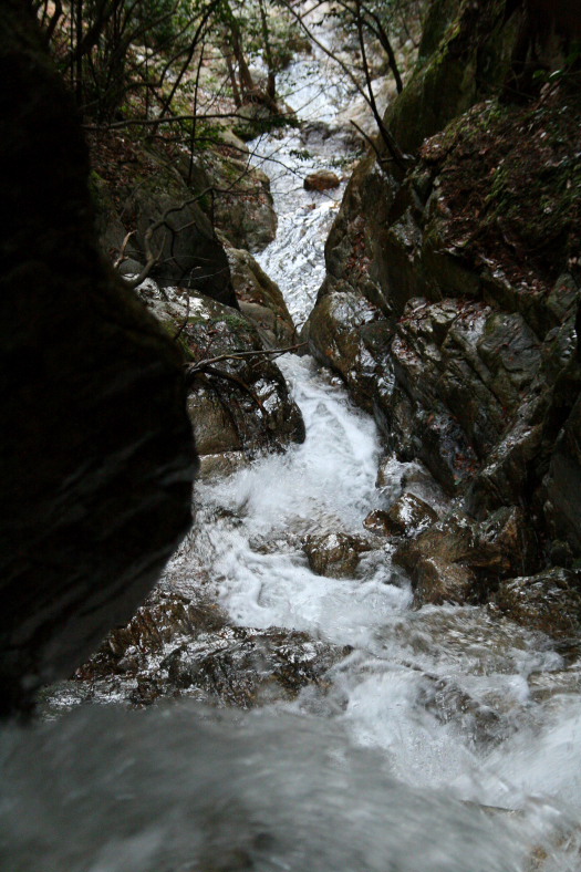 雄滝から見た「薬研の滝」最上段俯瞰。
