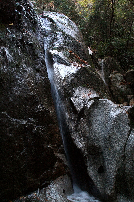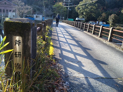 斧研の滝(よきとぎのたき)2009/11/25 滋賀県大津市上田上牧町 大戸川支流 斧研谷 落差:下の滝:3m、斧研の滝:8m、上の滝:13m、上流滑滝 石山駅から30分程で発電所前に着いた。 「斧研橋」で大戸川を渡り発電所へ・・この日の天候は快晴。
