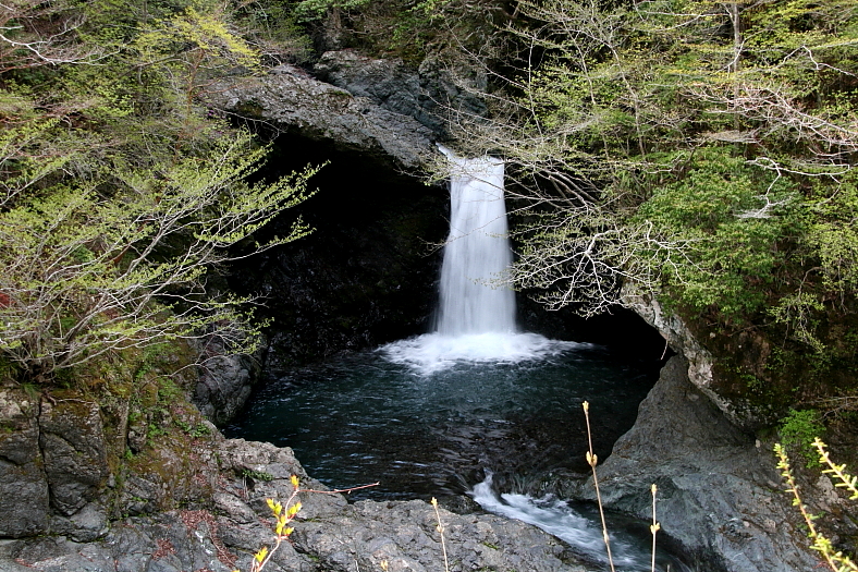対岸に落ちる「にくぶちの滝」を見下ろしたところですでに3時近い時刻。