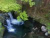R16正木から2km程慈眼寺を目指すと「淵神の塔」といわれる國安孝昌氏(筑波大学准教授・造形作家)と正木地区住民が制作した作品の建っているヘアピンカーブから沢に入ってすぐの上流に「雄淵」、ヘアピンカーブ傍の下流に「雌淵」が落ちる。