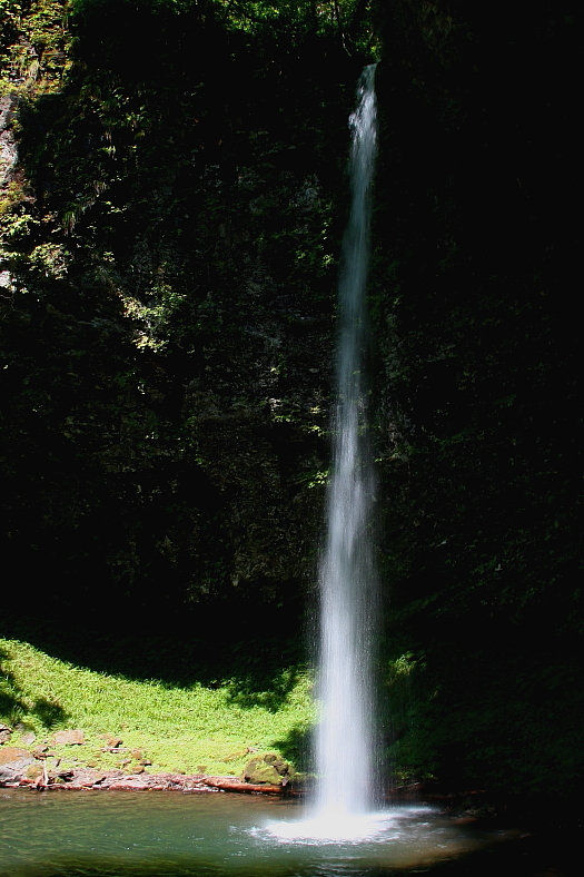 滝前の広い空間に落ちる直瀑は裏見滝でもある。