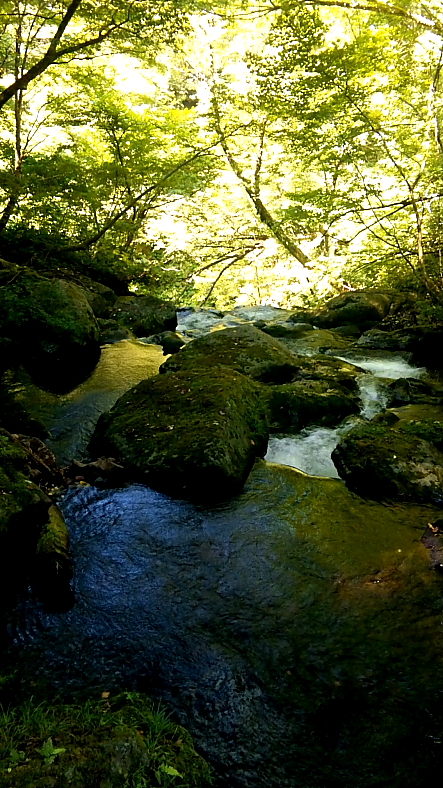大鹿滝の右側に続く滝見道を200m程で「出合の滝」上に着く。