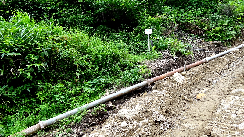 そして数十m行くと「七重滝登り口」の小さな標示から尾根に向かって急傾斜が続く。