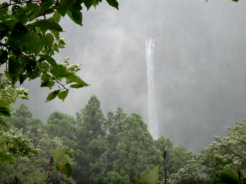 那智大滝 2012/08/04 和歌山県東牟婁郡那智勝浦町那智山 那智川 落差:133m 滝の向き=南 元きた路を引き返し青岸渡寺の”滝見寺”の裏あたりから「那智大滝」の遠望したのが丁度10時。 時々、風折れ状態になって落ちる「那智大滝」はさすがに雄大でした。 スタートから2時間余で今回の旅のメインイベントは終わった。 紀伊半島の天候は当分回復の気配が無い様子。 近くの”那智山蓬莱の湯”に浸かってさっぱりした後、遥遥関東から「テン泊の紀伊徘徊」を企画同行いただいた”写録の旅人さん”とお別れして”奈良の滝の(デジマンさん)”にお願いして近鉄”大和八木駅”まで送っていただきヤサに帰還したのが5時過ぎでした。 短い旅でしたが、「文蔵の滝」や「仙人滝」、「那智の二の滝、三の滝」など感動の滝巡りの一方、熊野川流域の驚く水害の様子に心が痛んだ。 そして、何といっても半世紀以上ぶりの”テント泊”には新鮮な感動とほろ苦さも体験できた。 人生万歳!! |